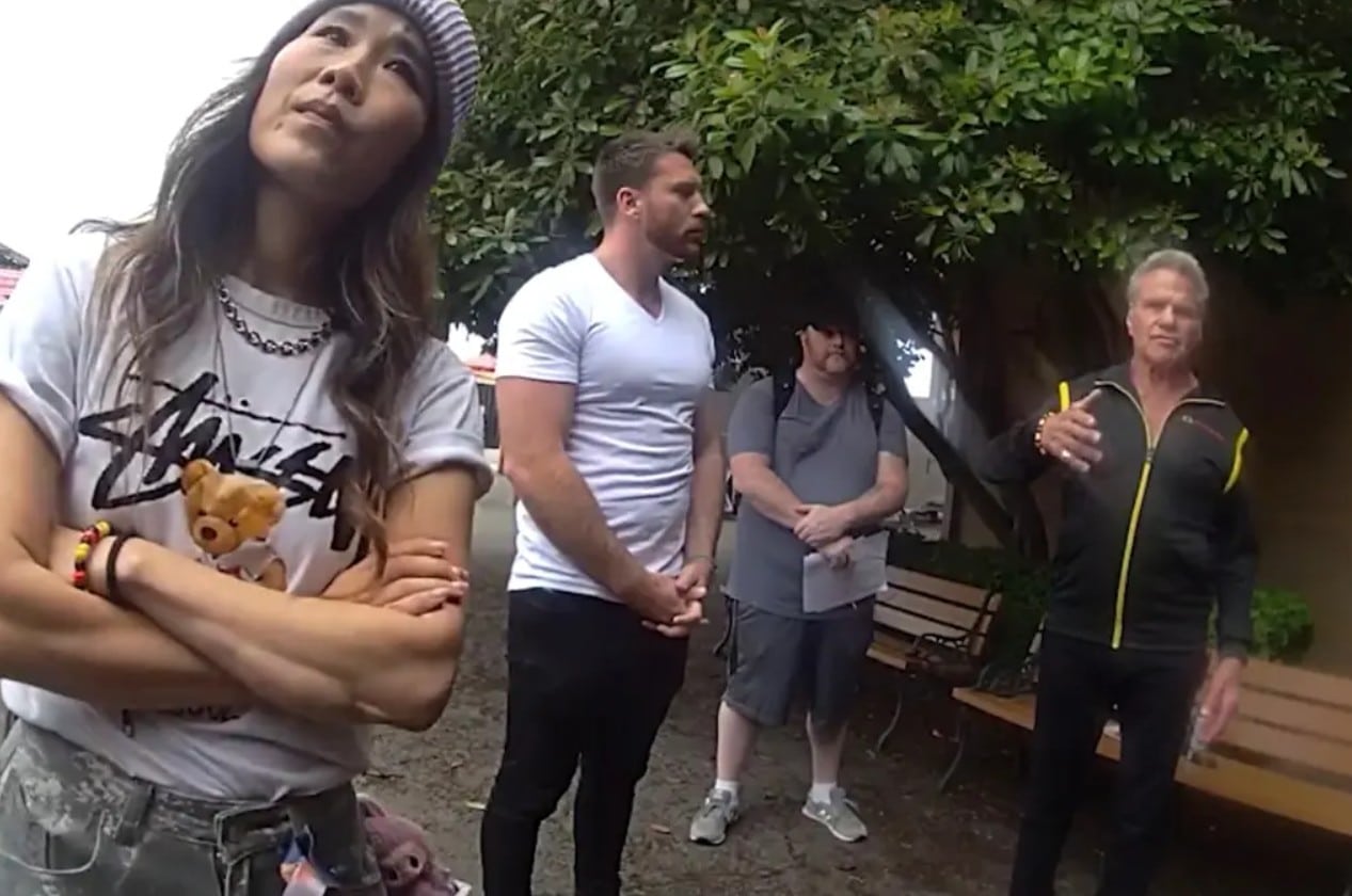 Η ίδια αντέδρασε αμέσως και απευθύνθηκε σε αστυνομικό που εργαζόταν στην εκδήλωση. Στο υλικό από την κάμερα σώματος του αστυνομικού, η Hannah-Kim φαίνεται σοκαρισμένη αλλά και εξοργισμένη: