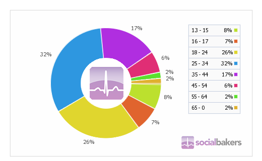 Τι ηλικίας όμως είναι οι Έλληνες χρήστες του facebook; Η μεγαλύτερη ηλικιακή ομάδα, όπως βλέπτε και στο γράφημα, είναι 25-34 ετών, που αποτελούν το 32% των Ελλήνων χρηστών, ακολουθούμενοι από τους νεαρότερους, ηλικίας 18-24 (26%) και η τρίτη σε πλήθος ηλικιακή ομάδα (κατά 17%) είναι εκείνη των 35-44. Είναι εντυπωσιακό το ποσοστό των ηλικιών 13-17 που απαριθμούν το 15% των Ελλήνων που χρησιμοποιούν το κοινωνικό δίκτυο.