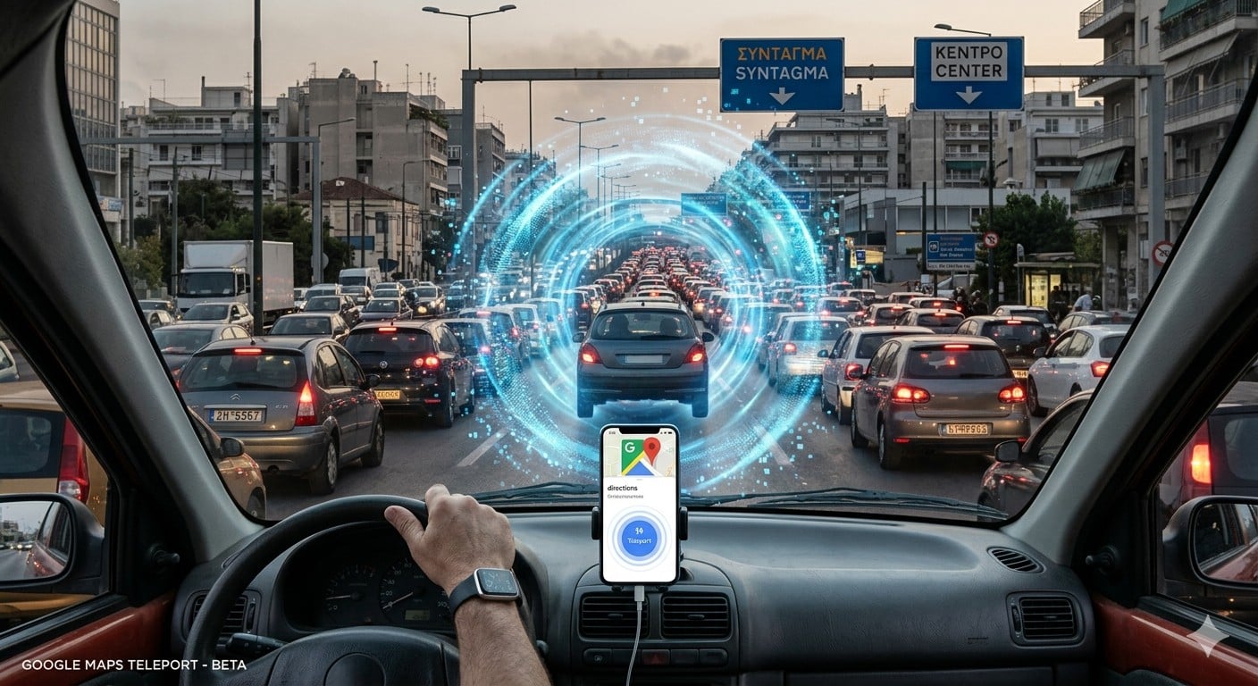 Είναι η είδηση που περιμέναμε δεκαετίες και υπόσχεται να αλλάξει ριζικά την καθημερινότητα κάθε Αθηναίου που έχει περάσει τη ζωή του εγκλωβισμένος στις λεωφόρους της πόλης. Σήμερα το πρωί, σε ένα έκτακτο event στα κεντρικά γραφεία της στο Mountain View της California, η Google παρουσίασε το Project Quantum Teleportation ή Google Maps Q.T. Editon, μια επαναστατική λειτουργία μέσα στο γνώριμο περιβάλλον του Google Maps που στοχεύει στην οριστική κατάργηση των αποστάσεων μέσω της τηλεμεταφοράς.