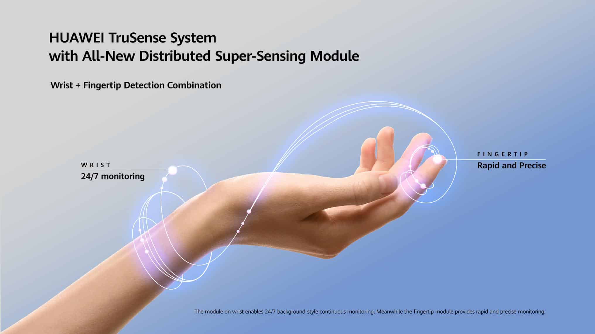 Για να μπορέσει λοιπόν η Huawei να αντιμετωπίσει με μεγαλύτερη αποτελεσματικότητα τα παραπάνω προβλήματα χρειάστηκε να προβεί σε σημαντικά τεχνολογικά breakthroughs, αναπτύσσοντας το Super Sensing Module. Πρόκειται για έναν σούπερ εξελιγμένο αισθητήρα, ο οποίος είναι σε θέση να ανιχνεύει από τον καρπό αλλά και από την άκρη του δαχτύλου μας, μια σειρά από readings που σχετίζονται με την υγεία μας. Αυτή η πατενταρισμένη τεχνολογία συνδυάζει οπτικά, ηλεκτρικά, ακουστικά και μηχανικά σήματα, βελτιώνοντας στο maximum την ακρίβεια, την ταχύτητα και την πληρότητα του παρεχόμενου αποτελέσματος, επιτυγχάνοντας έτσι μετρήσεις χωρίς καμία απώλεια και κάτω από οποιοδήποτε σενάριο. Αυτό που διαπίστωσε το R&D τμήμα της Huawei είναι ότι με την πυκνή αγγειακή δομή και το λεπτότερο δέρμα της άκρης του δακτύλου, μειώνεται σημαντικά η παρέμβαση από μελανίνη και τρίχες, προσφέροντας ένα μοναδικό πλεονέκτημα σε ορισμένα σενάρια, ιδίως στην καρδιαγγειακή παρακολούθηση. Με τον συνδυασμό των φυσιολογικών δεδομένων, το σύστημα συλλαμβάνει πιο πλούσια σήματα από περισσότερα σημεία επαφής, προσφέροντας ταχύτερη, πιο ακριβή και πιο ολοκληρωμένη εικόνα της υγείας. Ακόμη και εάν ο χρήστης του ρολογιού συνηθίζει να πραγματοποιεί το workout του σε ένα ψυχρό περιβάλλον, η εάν καλείται να μετρήσει το οξυγόνο του σε υψηλό υψόμετρο ή ακόμη και εάν οι διακυμάνσεις στην αρτηριακή του πίεση είναι συχνές, η αναβαθμισμένη τεχνολογία του εξελιγμένου συστήματος TruSense έχει τη λύση για ασφαλείς και λεπτομερείς καταγραφές.