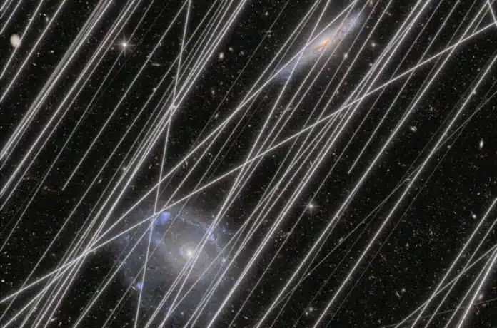 Η λήψη καθαρών, ανεμπόδιστων εικόνων από το διάστημα γίνεται ολοένα και δυσκολότερη για το Hubble και άλλα τηλεσκόπια που βρίσκονται σε τροχιά γύρω από τη Γη. Η εκρηκτική αύξηση στις εκτοξεύσεις δορυφόρων έχει προκαλέσει μια άνευ προηγουμένου «μόλυνση» του ουρανού, με αποτέλεσμα οι δορυφορικές ουρές — φωτεινές γραμμές που αφήνουν οι δορυφόροι καθώς κινούνται — να υποβαθμίζουν σημαντικά τις επιστημονικές παρατηρήσεις. Σύμφωνα με νέα μελέτη της NASA, που δημοσιεύτηκε στο Nature, μέχρι και το 40% των εικόνων του Hubble και έως 96% από τρία άλλα τηλεσκόπια θα μπορούσαν να επηρεαστούν μέσα στην επόμενη δεκαετία.