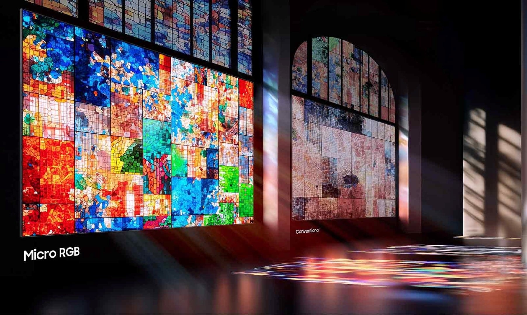 Από την άλλη, η MicroRGB, είναι μια εκλεπτυσμένη εξέλιξη της τεχνολογίας LCD. Αντί να χρησιμοποιεί ένα αυτόφωτο panel, εκμεταλλεύεται ένα σύστημα οπίσθιου φωτισμού που αποτελείται από ανεξάρτητα, μικροσκοπικά κόκκινα, πράσινα και μπλε LEDs – καθένα από τα οποία έχουν μέγεθος μικρότερο των 100 μικρομέτρων. Ένας πανίσχυρος μηχανισμός AI ελέγχει με ακρίβεια αυτά τα εκατομμύρια LEDs, παρέχοντας ένα απαράμιλλο επίπεδο τοπικής μείωσης της φωτεινότητας.