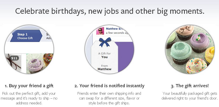 Πληροφορίες για το εάν η εν λόγω δυνατότητα θα γίνει διαθέσιμη και στη χώρα μας δεν έχουμε σε αυτή τη φάση, στις ΗΠΑ, όμως, κάποιοι ήδη έχουν αρχίσει και “γεύονται” κυριολεκτικά τα Facebook gifts των φίλων τους, καθώς μία από τις εταιρείες που συμμετέχουν ήδη στο project είναι τα περίφημα Magnolia Bakeries με τα “διάσημα” cupcakes τους.