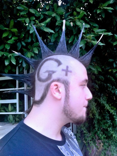 Είναι αλήθεια πως οι γραμμές είναι εξαιρετικές και το πλαίσιο με τα spikes, ότι πρέπει για να “αναδείξει” το σήμα του κοινωνικού δικτύου. Φίλε Eazy Purple, έχεις όλα τα φόντα να μπεις στο πάνθεον των πιο crazy fans του Google+. (Και επίσης να μας συστήσεις τον κομμωτή σου. Είναι τρομερά ακριβής)