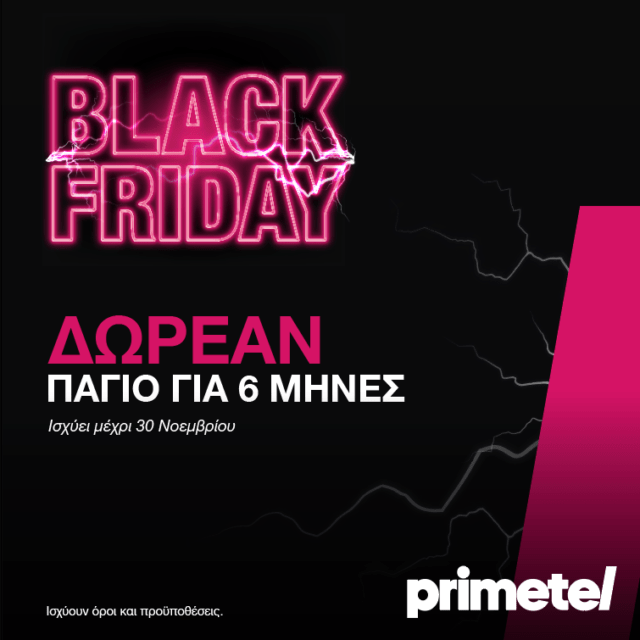 Η «Black Friday» είναι προ των πυλών και η Primetel την υποδέχεται με μια μοναδική προσφορά. Συγκεκριμένα, από σήμερα και μέχρι τις 30 Νοεμβρίου, όσοι καταναλωτές επιλέξουν να συνδεθούν με οποιοδήποτε από τα διαθέσιμα πλάνα κινητής ή πακέτο internet της εταιρείας, θα έχουν δωρεάν πάγιο για τους 6 πρώτους μήνες.