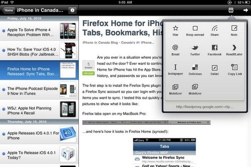 Mobile RSS ( iOS, Basic Free, Premium $2,99)