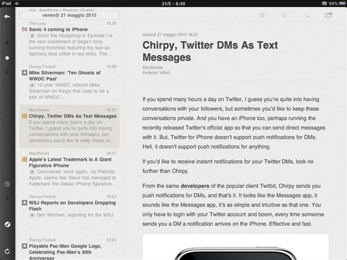 To Pulse συγκεντρώνει πολλά χαρακτηριστικά και διαθέτει το προνόμιο ότι είναι δωρεάν. Μπορείτε να προφορτώσετε τα νέα της ημέρας, να το συγχρονίσετε με το Google Reader, ενώ εππλέον υποστηρίζει sharing από Facebook, Twitter, Instapaper και το e-mail σας.