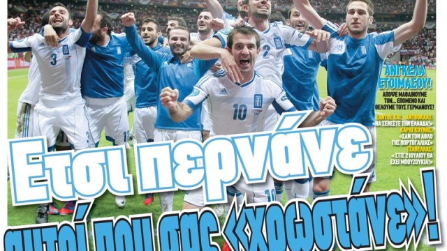 Σπουδαία μέρα η σημερινή, έτσι; Όχι, δεν μιλάμε για τις εκλογές (άλλωστε εκλογές, έτσι όπως πάμε έχουμε… κάθε μήνα!) αλλά για τη χθεσινοβραδινή πρόκριση της Εθνικής μας στους «8» του Euro 2012! Όπως θα περίμενε κανείς όλα τα πρωτοσέλιδα των αθλητικών εφημερίδων σήμερα έχουν γαλανόλευκες αποχρώσεις με την εμφάνιση της «επίσημης αγαπημένης» όλων των Ελλήνων να έχει δικαίως τη μερίδα του λέοντος.