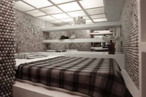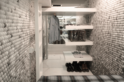 Ένα τυπάκι με καλλιτεχνικές ανησυχίες αποφάσισε να διακοσμήσει τους τοίχους του μικρού αυτού διαμέρισματός με μπάλες του Golf. Και δεν χρησιμοποίησε ούτε μία, ούτε δύο, αλλά 25.000 μπάλες. Η αλήθεια είναι πως αυτό δεν είναι ένα κανονικό διαμέρισμα, αλλά ένα πατάρι πάνω από τα γραφεία της αρχιτεκτονικής επιχείρησης Snarkitecture. Ο δημιουργός και εραστής του golf, Daniel Arsham, χρησιμοποιεί το χώρο αυτό μόνο για τον ύπνο και τη ντουλάπα που διαθέτει και χρησιμοποιεί για είσοδο μια σκάλα που περνάει από το μπάνιο των υπαλλήλων της επιχείρησης. Μπορεί να ακούγεται τρελό, αλλά με κάποιο τρόπο αυτό το παράξενο διαμέρισμα είναι ιδανικό για ένα διάλειμμα από τη δουλειά.
