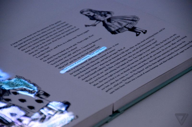 Κατά την διάρκεια της έκθεσης, το πρωτότυπο της Sony είχε σχεδιαστεί ειδικά για να αναγνωρίζει κάποιους τίτλους βιβλίων που τοποθετούμε επάνω του, όπως το πασίγνωστο «Η Αλίκη στην Χώρα των Θαυμάτων» του Lewis Carroll! Όταν ο εκπρόσωπος της Sony άνοιγε το βιβλίο, το τραπέζι γέμιζε με animations που μπορούσαν (με drag n’ drop!) να βγουν έξω από αυτό και να αλληλεπιδράσουν με αντικείμενα πάνω στο τραπέζι, όπως ένα φλιτζάνι τσαγιού ή μια στοίβα χαρτιών!